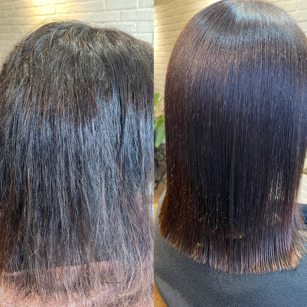 縮毛矯正は美容師技術の中で難易度が最も高く、技術や知識の差により仕上りの違いが明確に出ます。ダメージや髪質を見極め、最高の仕上がりを実現するために、カウンセリングから仕上げまでの全てを、付きっきりで施術させて頂きます。