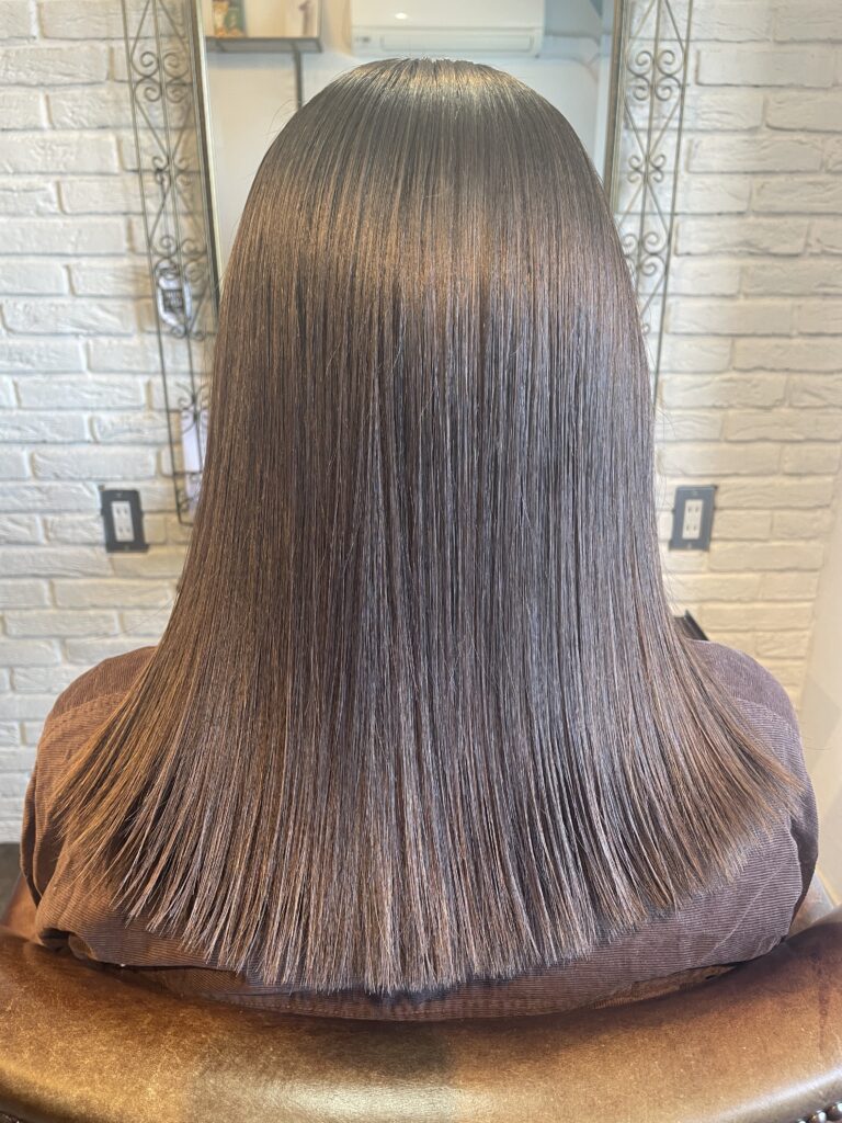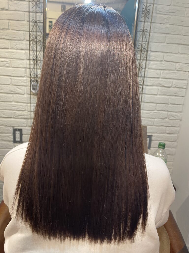 驚くほど柔らかくしなやかに仕上がり、まるでストレートパーマをかけていないかのような質感になります。