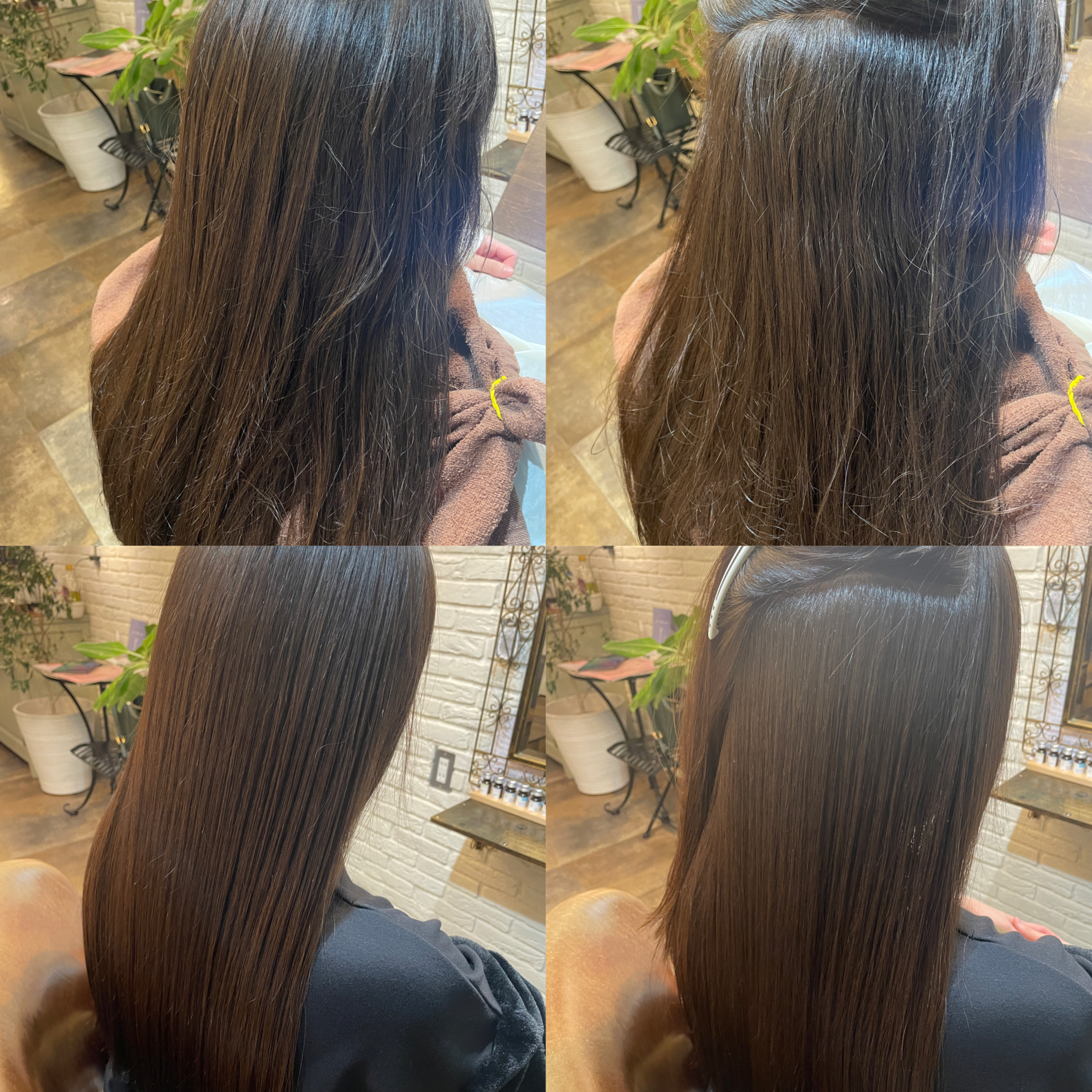 裏を返せば、他店のカラーや縮毛矯正で傷んでいて、当店の最初の施術ではそれなりの仕上がりでも、通って下さることで絶対に超絶綺麗な美髪になっていきます。