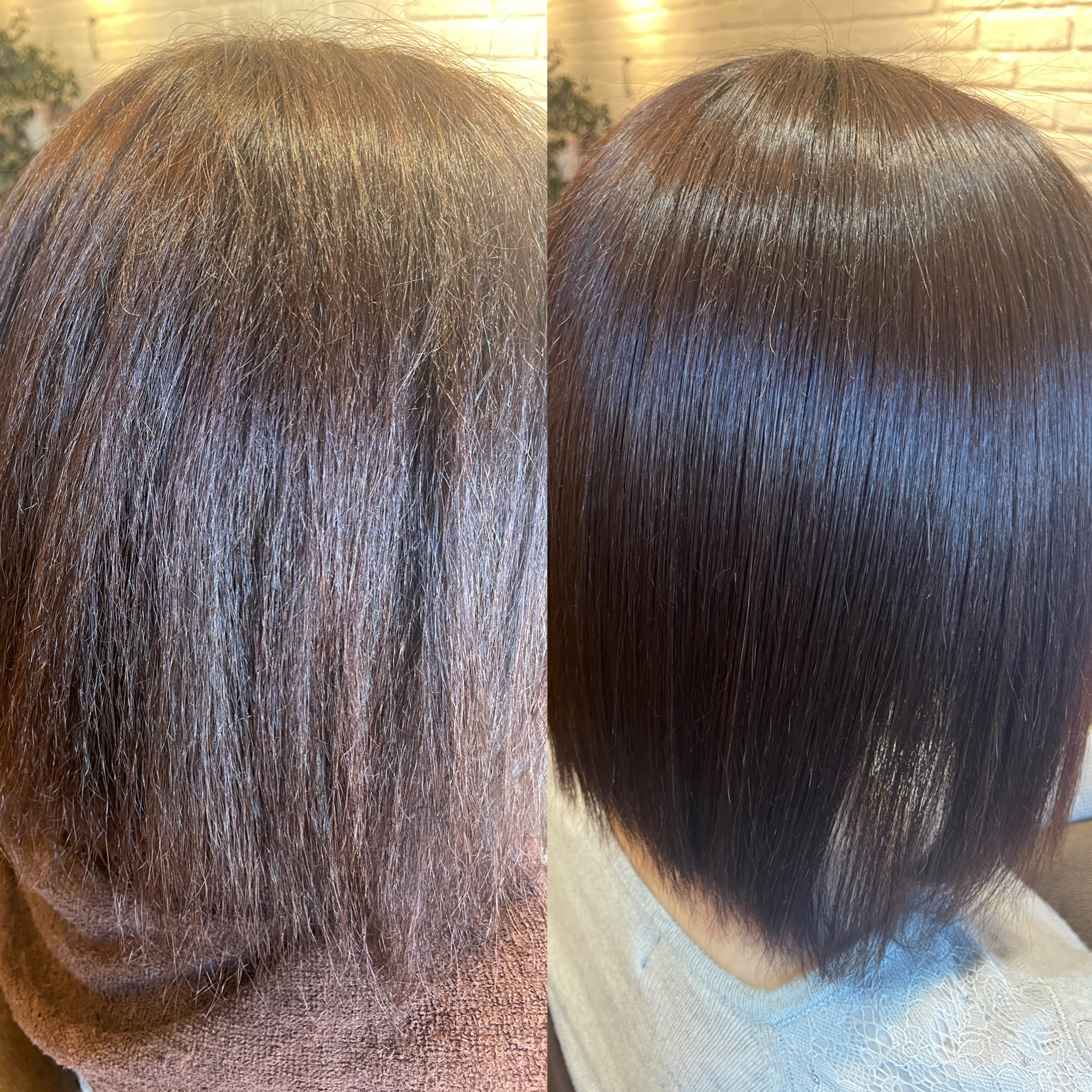 一般的な縮毛矯正は、例えるなら植物の幹の部分だけに作用させる施術です。薬剤が強いか弱いかの二択になりやすく、枝や葉、根のように場所ごとに違うクセを持っている髪には、細かく対応することができません。その結果、伸びすぎたり、逆に伸びきらなかったりといった失敗が起こりやすくなります。