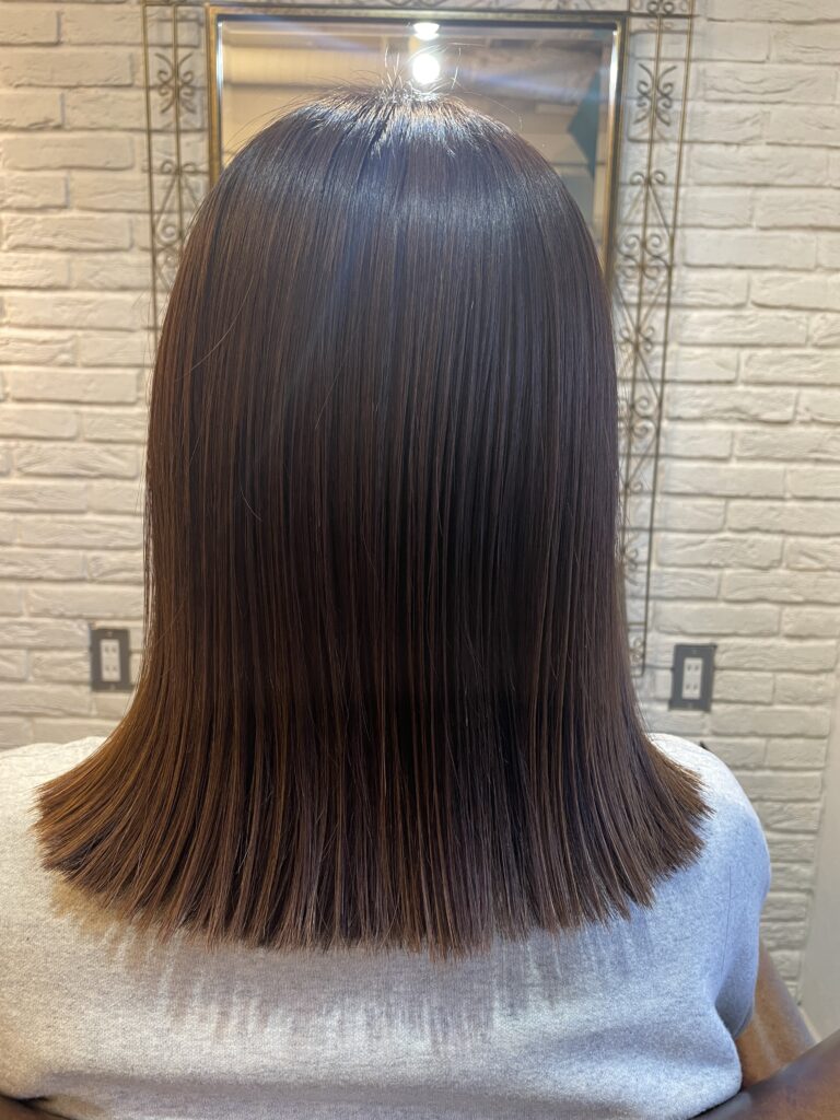 その結果、乾かすだけで自然にまとまり、ツヤと柔らかさのあるストレートヘアに仕上がりました。